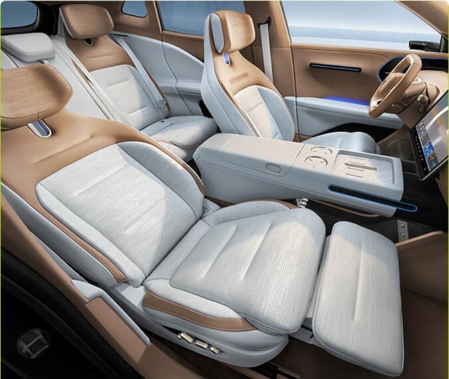 The 2024 Changan Avatar 07 offers a spacious and comfortable interior designed to meet the needs of both drivers and passengers. The cabin is equipped with high-quality materials and a modern design, featuring "Zero-Gravity" seats that provide optimal support for long-distance travel. The front seats include heating, ventilation, and massage functions, while the rear seats offer ample space and comfort, reducing fatigue during extended journeys.The interior features two advanced displays: a 15.6-inch central control screen for the driver and passengers to access vehicle controls and infotainment systems, and a 35.4-inch 4K display for rear passengers' entertainment. Additionally, the interior is outfitted with a 25-speaker Meridian Audio system, enhancing the ambiance and delivering a luxurious travel experience.